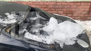 В центре Москвы упавшие с крыши глыбы льда пробили два автомобиля