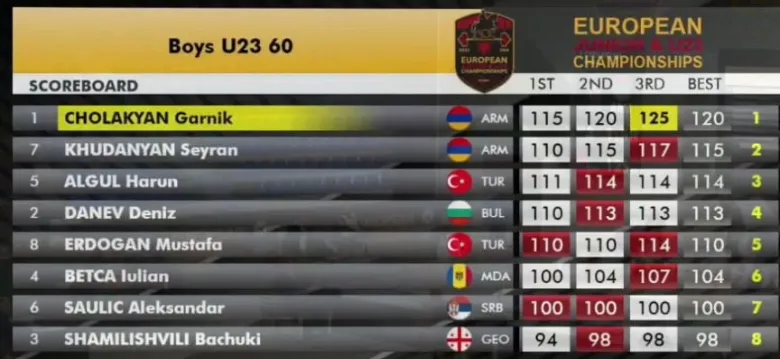Гарник Чолакян стал обладателем малой золотой медали, подняв 120 кг, а Сейран Худанян с результатом 115 кг завоевал малую серебряную.