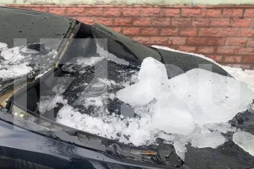 В центре Москвы упавшие с крыши глыбы льда пробили два автомобиля