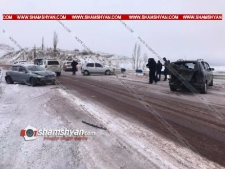 Как сообщает Shamshyan.com, авария произошла на перевале, известном как «Чайный». По предварительным данным, два человека госпитализированы. Главная причина массовой аварии – гололед.