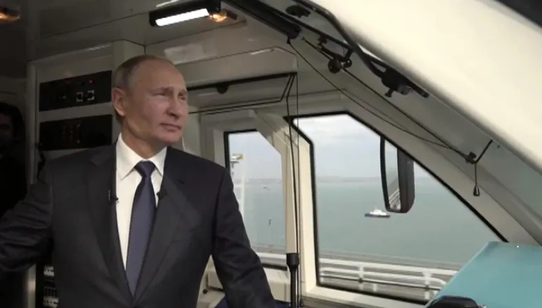 Из Керчи в Тамань на рельсовом автобусе из трех вагонов отправился президент России Владимир Путин. Глава российского государства в кабине локомотива в прямом эфире телеканала "Россия 24" переезжал через Крымский мост. Российский президент примет участие в торжественном открытии пассажирского железнодорожного движения через Керченский пролив.