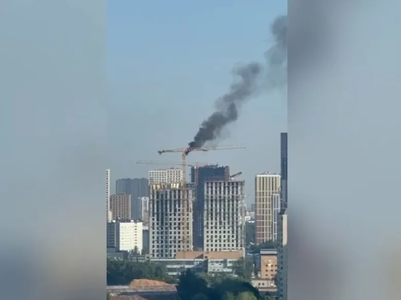 Башенный кран загорелся на севере Москвы и попал на видео