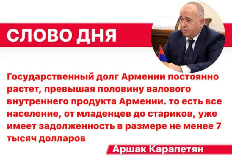 Лидер движения «Всеармянский фронт», бывший министр обороны Аршак Карапетян также отмечает, что все население Армении, от новорожденных до стариков, имеет задолженность в размере около 7 тысяч долларов. Люди, обладающие общественным признанием и авторитетом, регулярно фиксируют эти факты, но кажется, что ничего не произошло.