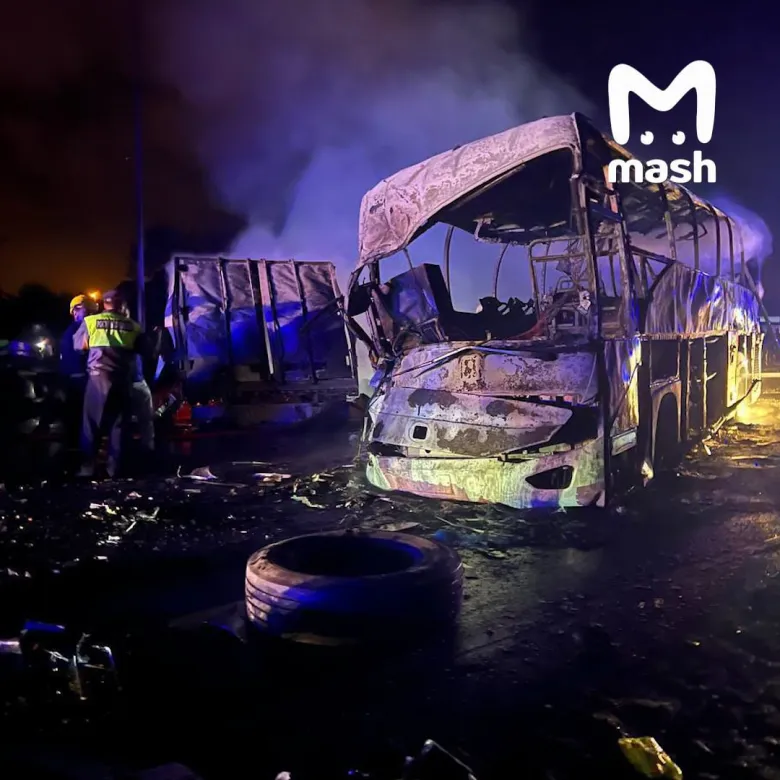 Жуткое ДТП с пожаром под Краснодаром: автобус столкнулся с фурой, погиб водитель