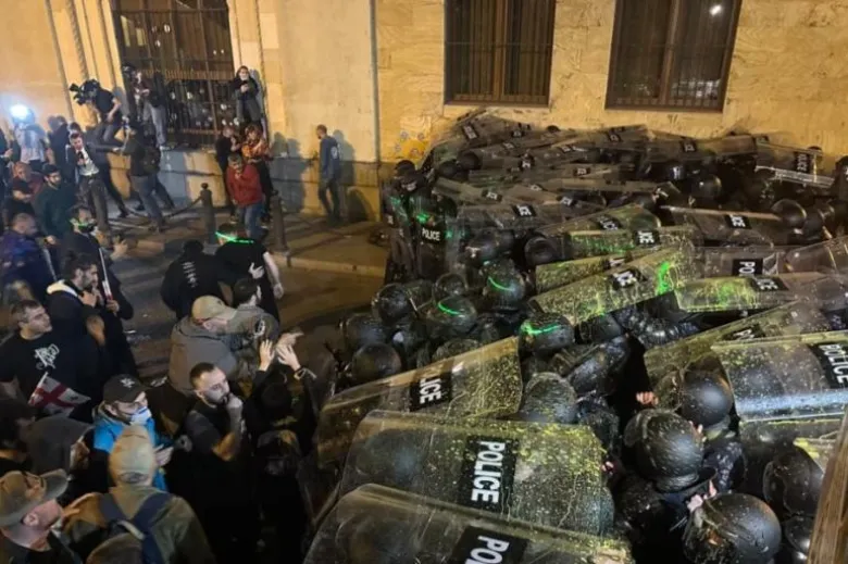 Противостояние протестующих с полицией продолжалось всю ночь на проспекте Руставели. Демонстранты жгли мусорные баки и деревянные стулья, пытаясь держаться подальше от правоохранителей, между ними время от времени происходили столкновения. Полиция применила водометы и слезоточивый газ.