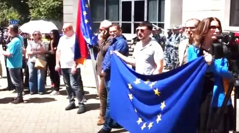 Вчера около 15 (кстати, эту цифру озвучили самим организаторы) «прозападников» с антироссийскими плакатами, оскорбительными плакатами в адрес президента РФ Путина и министра иностранных дел Лаврова собрались у главного входа в МИД РА, а в это время в здании МИД проходила встреча Арарата Мирзояна с главой МИД РФ:
