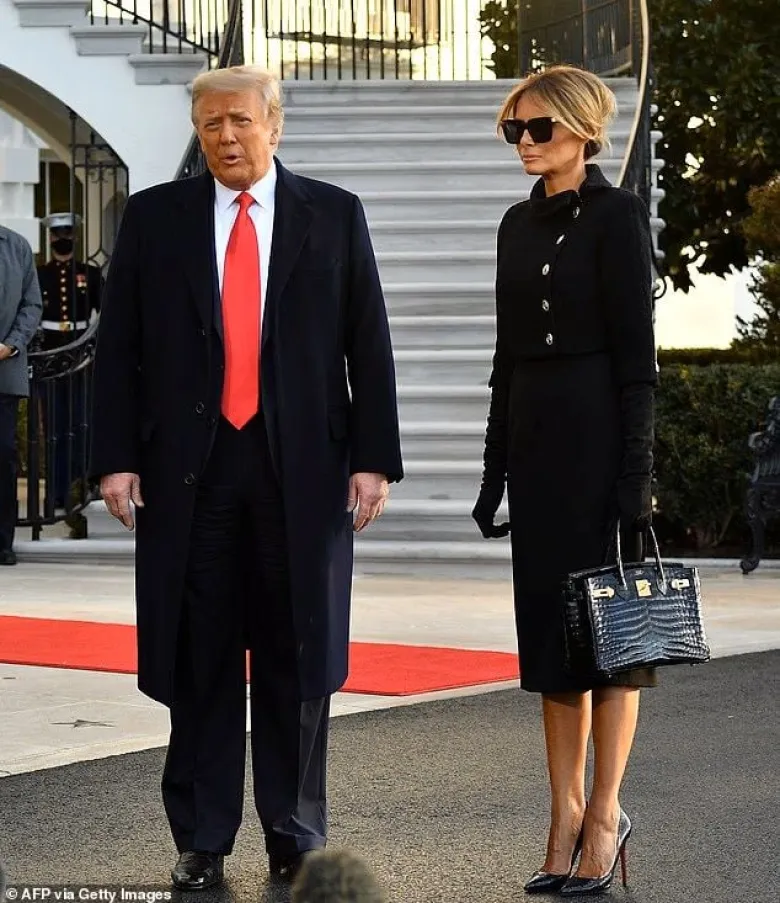 Именно с этой сумкой Мелания появилась в январе 2021 года, когда вместе с Дональдом Трампом покидала Белый дом в день инаугурации Джо Байдена. Она также брала её с собой во время государственного визита в Великобританию в 2019 году.
