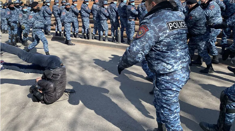 В ходе подвергания приводу граждан полициейский толкнул и свалил на землю фотографа «Спутник Армения» Арама Нерсесяна. К счастью, последний не пострадал.