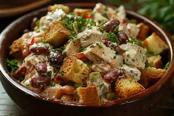 Салат из курицы с фасолью и сухариками: вкусно, быстро и доступно